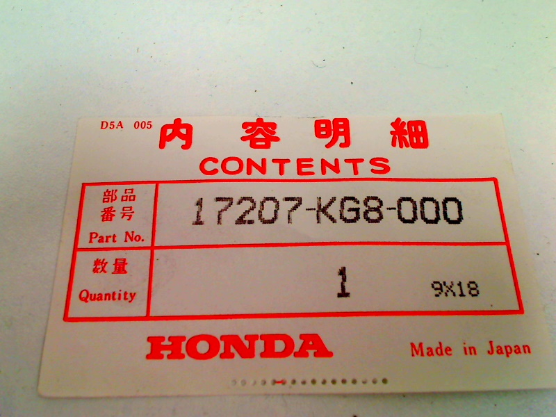 | Type | 17207-KG8-000 |